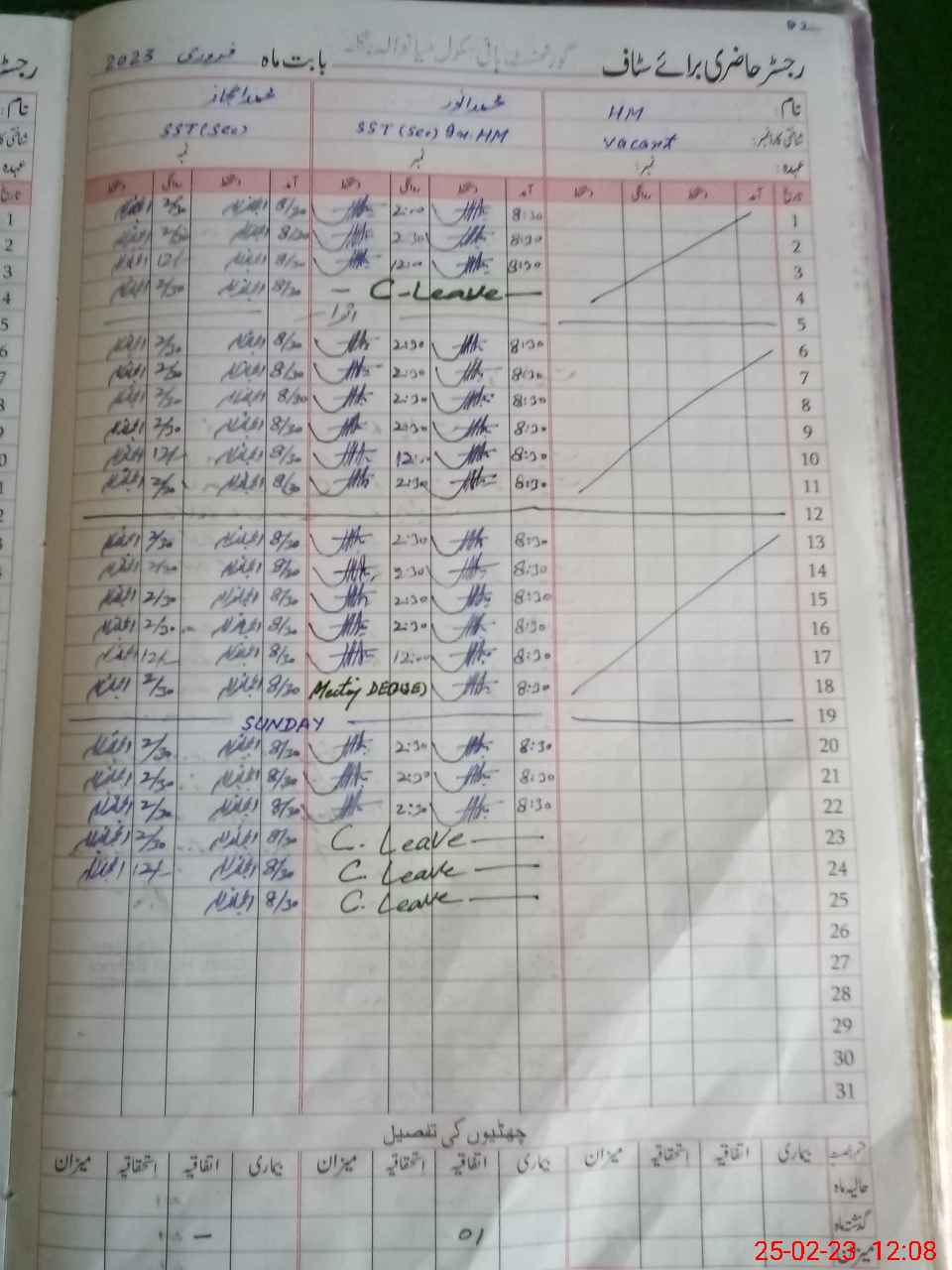 | CNIC | Full Name | Designation | R/C | Absence During Last Calender Month |