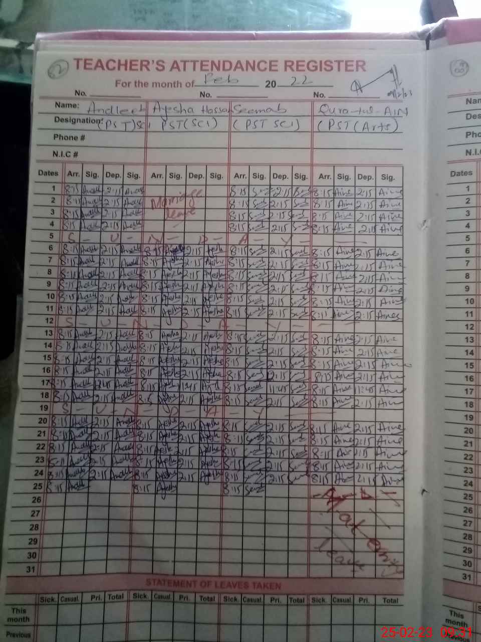 | 37**** | Qu**** UlAi**** | PST | Regular | 2 | 0 | 0 | 0 | 0 | 0 | 0 | 0 | 2 | Maternity |