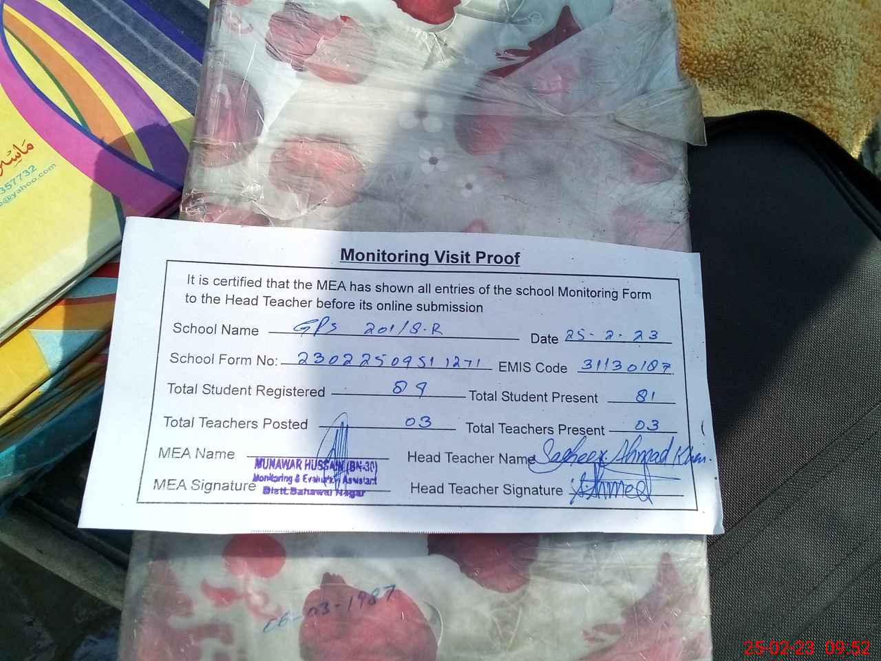 | EMIS Code: 31130187 | Name of School: GPS CHAK NO.201/8-R | |||