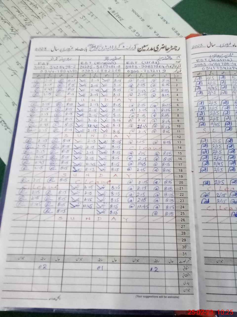 | Presence Of Teaching Staff | 10 | 10 | 0 |