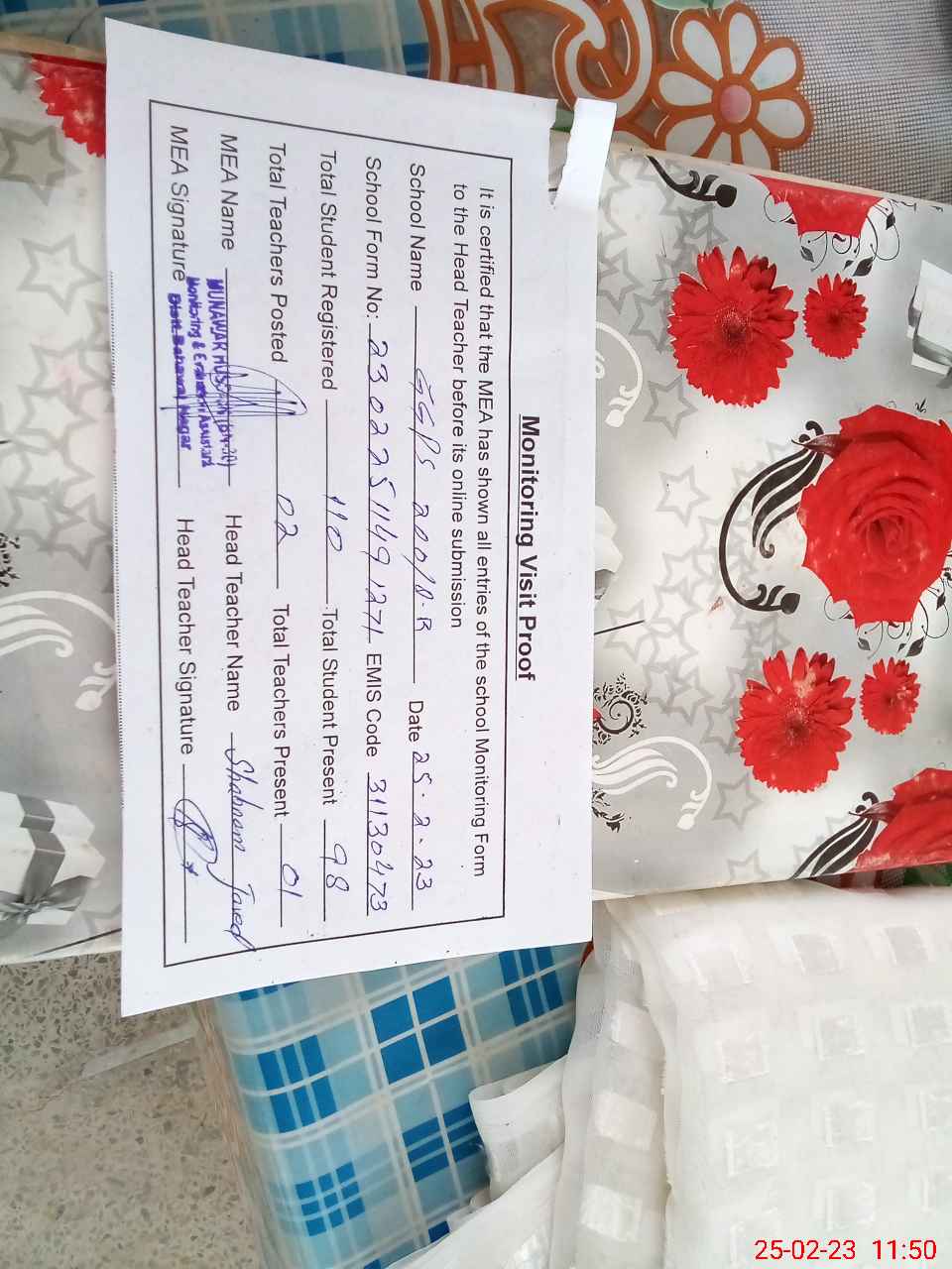 | Certified that this School was Inspected by the Undersigned MEA/DMO Today and the Information Stated Above is as Per Record. | |||||