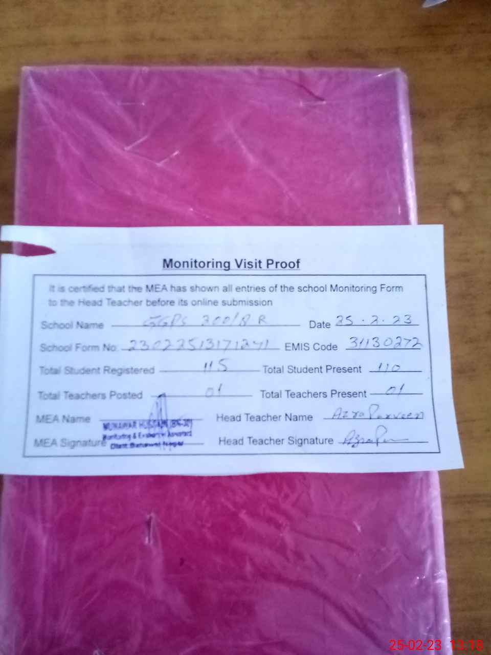 | EMIS Code: 31130272 | Name of School: GGPS CHAK NO 200/8-R W | |||