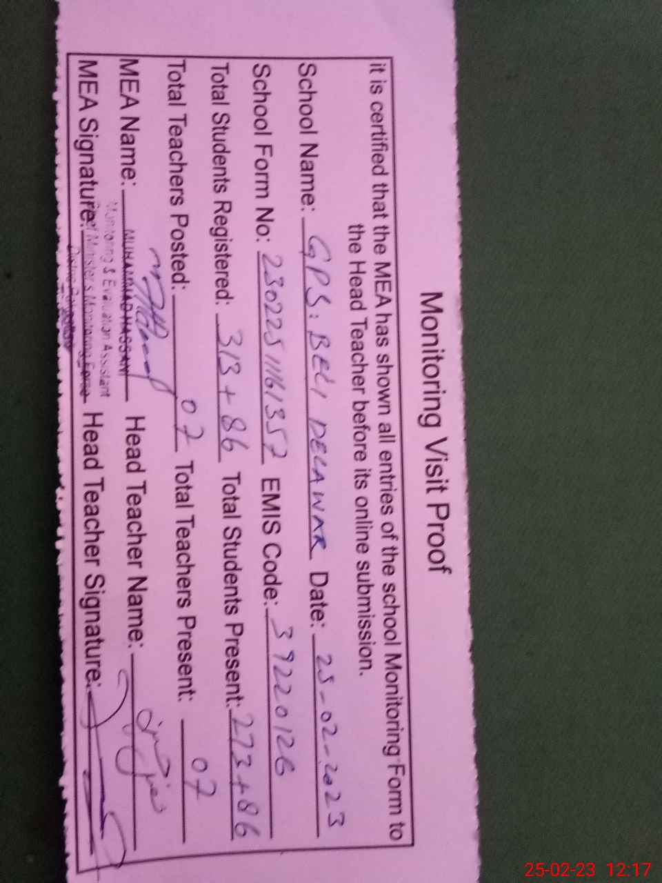 | EMIS Code: 39220126 | Name of School: GPS BEHLI DILAWAR | |||