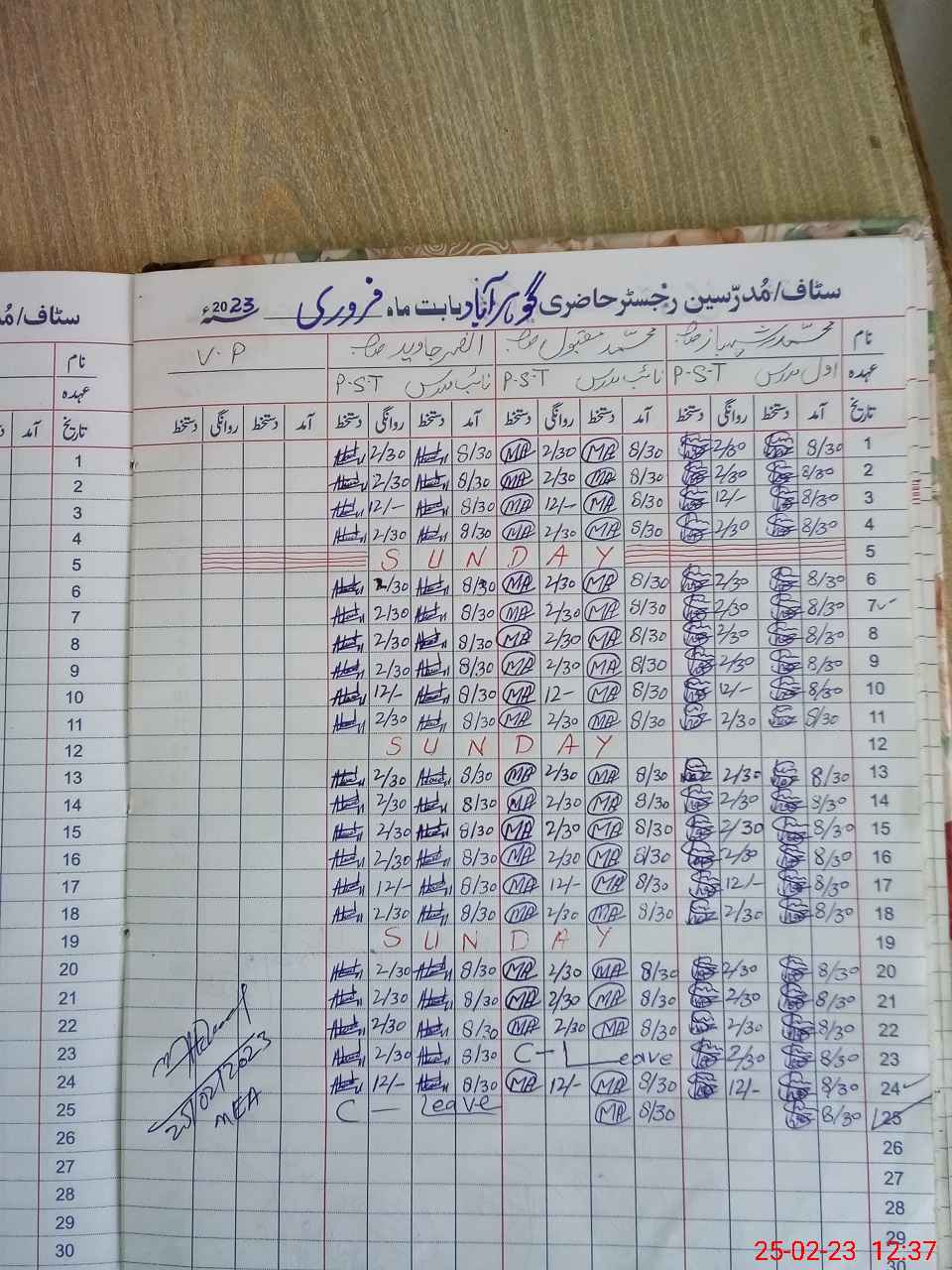 | Name: MU**** SH**** Designation: (School Headmaster's/Headmistress's) PST Phone/Cell Number: 03**** |