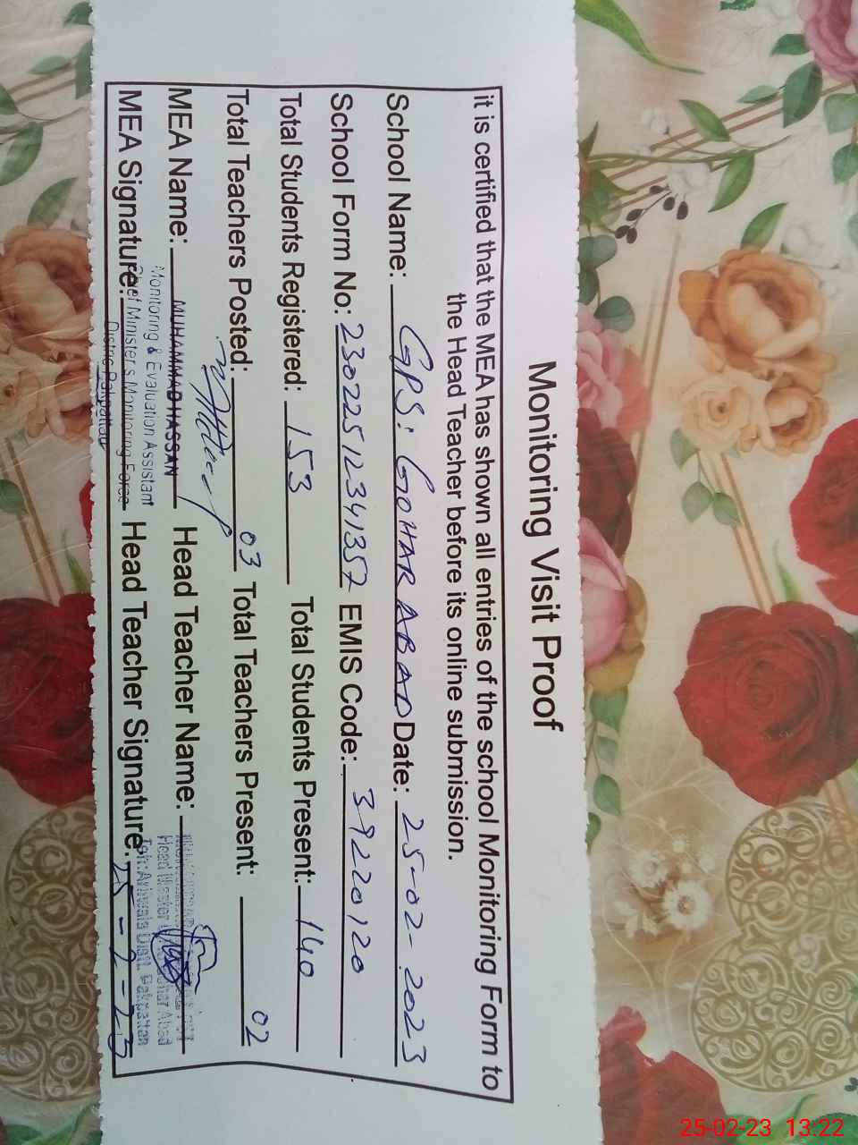 | EMIS Code: 39220120 | Name of School: GPS GOHAR ABAD | |||