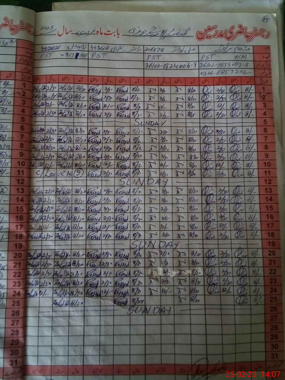 | CNIC | Full Name | Designation | R/C | Absence During Last Calender Month |