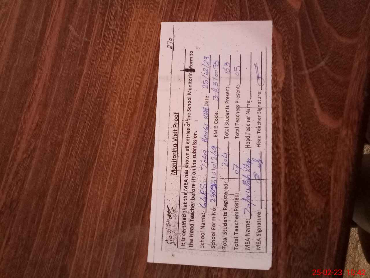 | Certified that this School was Inspected by the Undersigned MEA/DMO Today and the Information Stated Above is as Per Record. | |||||