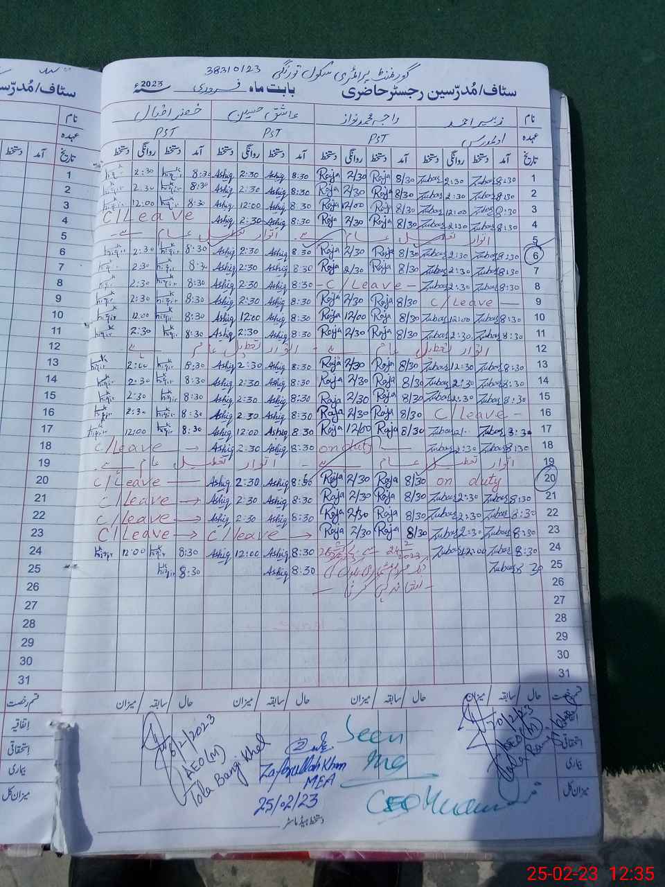 | CNIC | Full Name | Designation | R/C | Absence during last cal. month |
