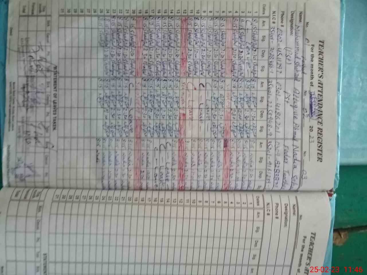 | Name: MU**** SH**** Designation: (School Headmaster's/Headmistress's) PST Phone/Cell Number: 03**** |