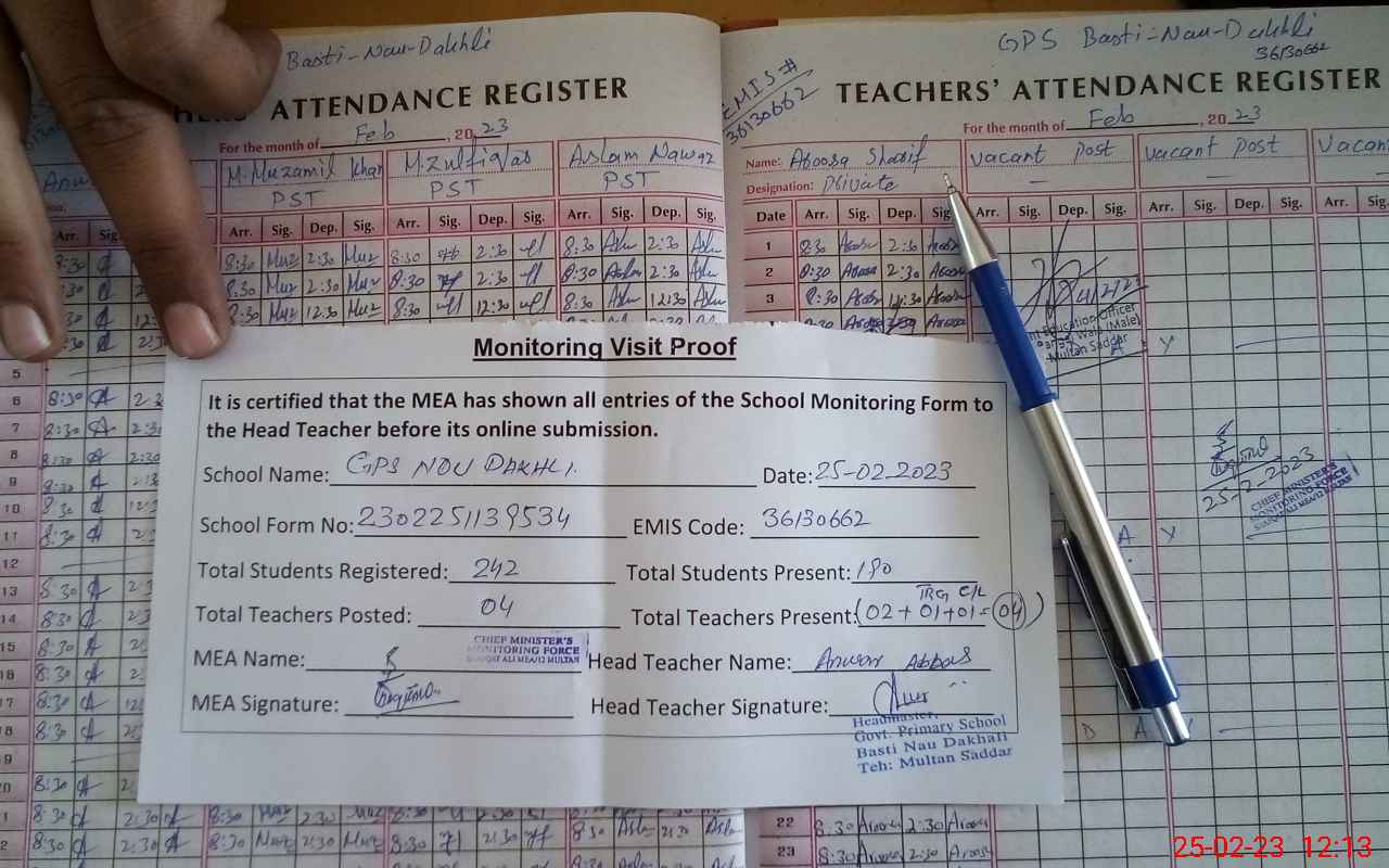 | Attendance Register | Head Teacher | MEA with School | Visit Proof |