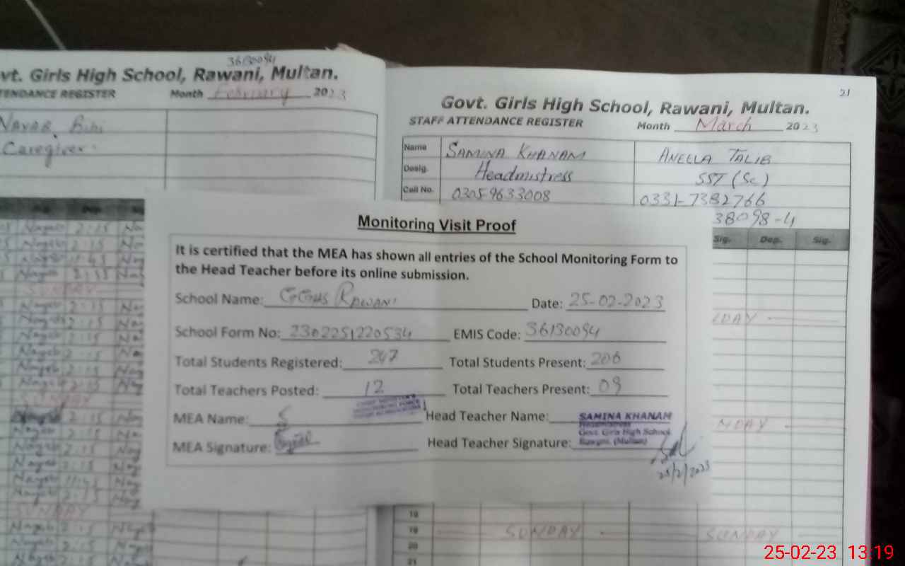 | EMIS Code: 36130094 | Name of School: GGHS RAWANI MULTAN | |||