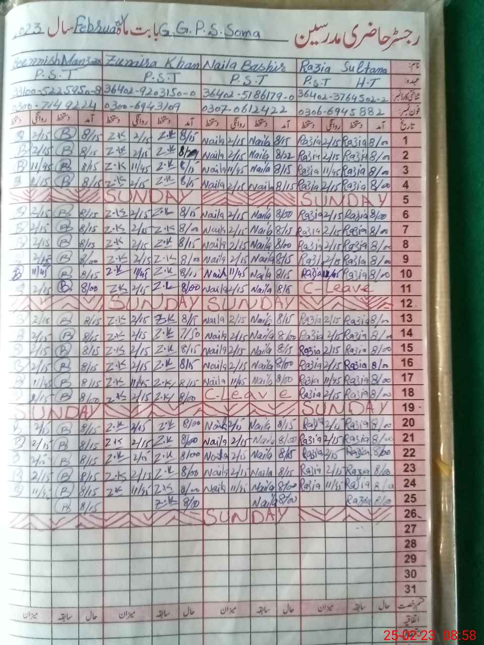 | Name: Zu**** Kh**** Designation: (School Headmaster's/Headmistress's) PST Phone/Cell Number: 03**** |