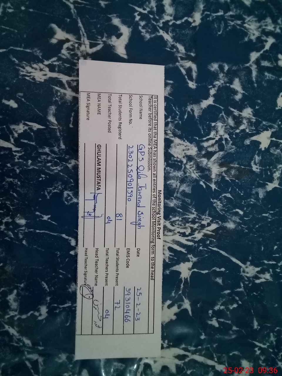 | EMIS Code: 39310466 | Name of School: GPS QILA JAWAND SINGH | |||