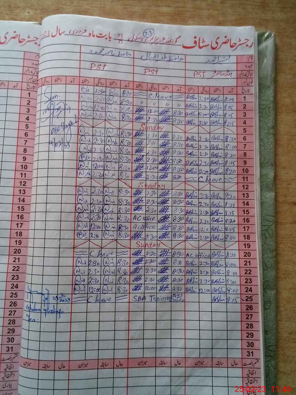 | CNIC | Full Name | Designation | R/C | Absence During Last Calender Month |