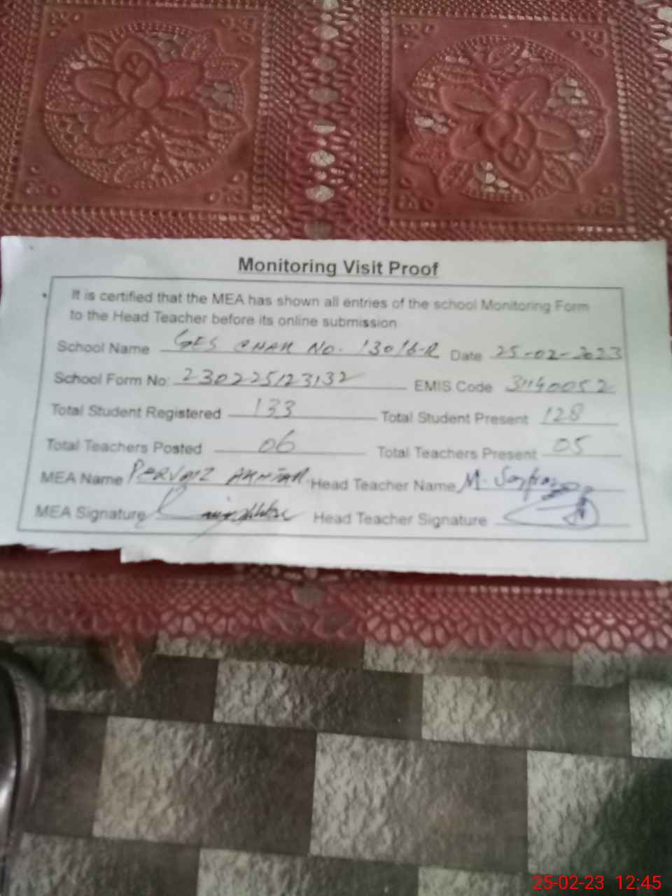| Certified that this School was Inspected by the Undersigned MEA/DMO Today and the Information Stated Above is as Per Record. | |||||