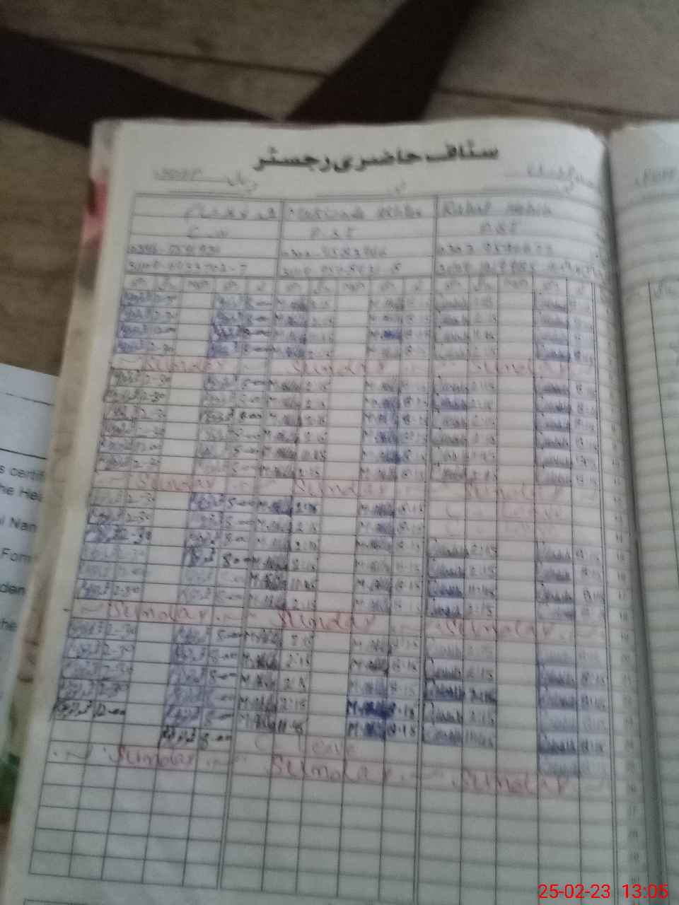 | CNIC | Full Name | Designation | R/C | Absence During Last Calender Month |
