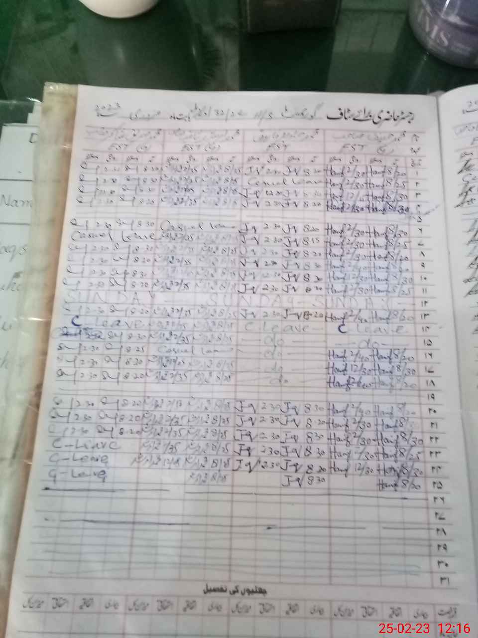 | CNIC | Full Name | Designation | R/C | Absence During Last Calender Month |
