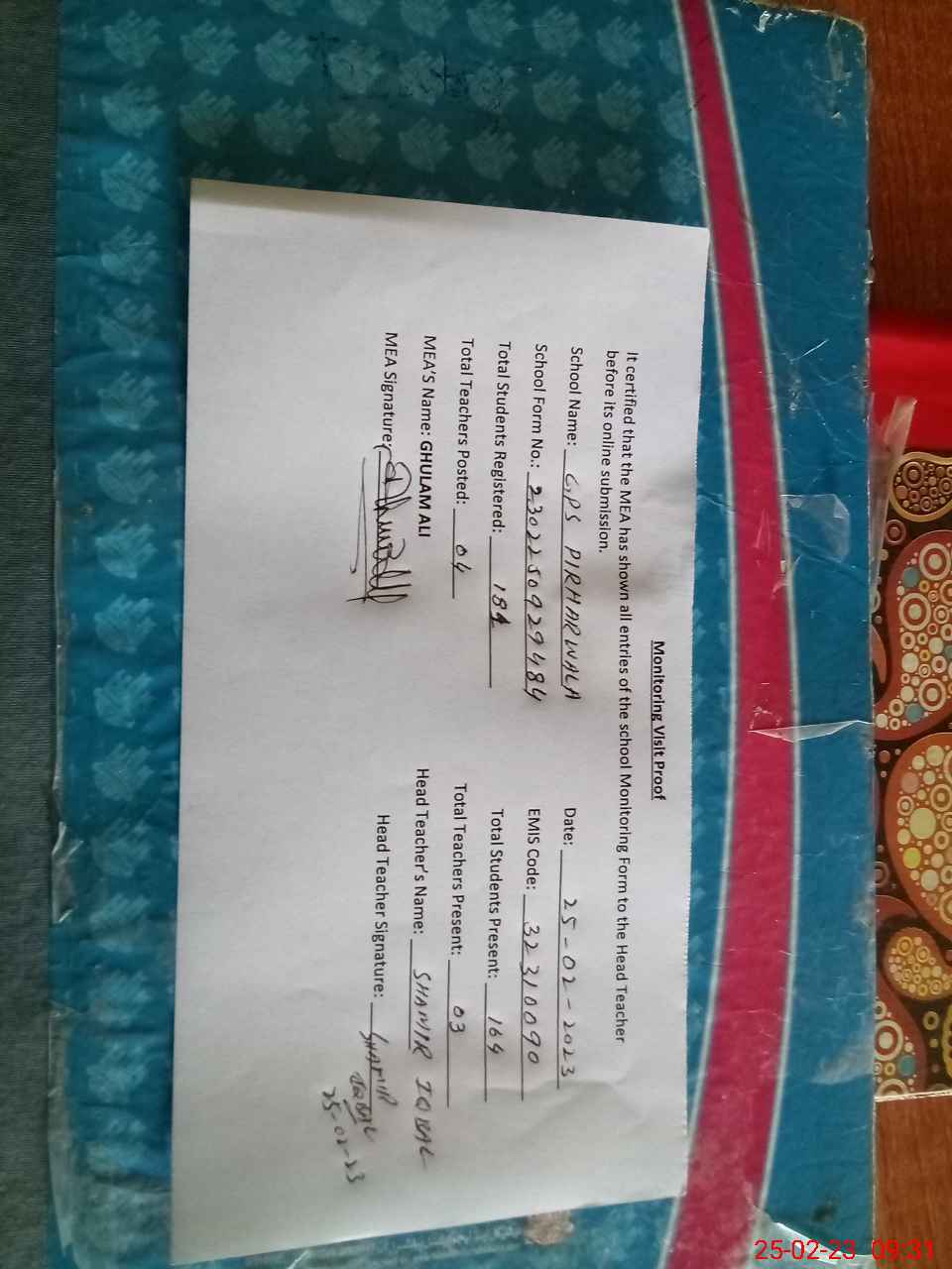 | EMIS Code: 32310090 | Name of School: GPS PIRHAR WALA | |||
