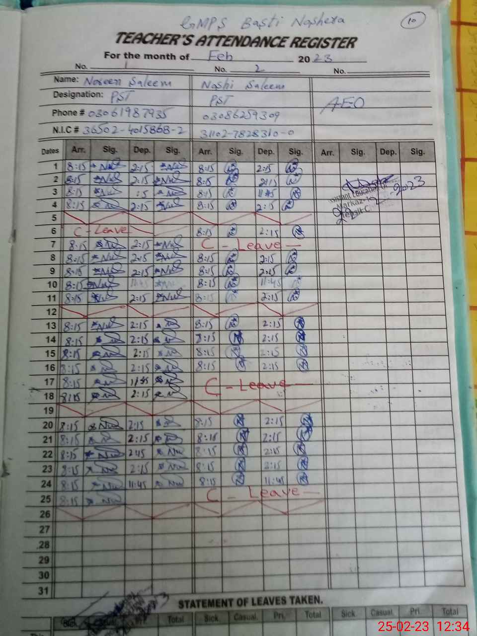 | Name: No**** Sa**** Designation: (School Headmaster's/Headmistress's) PST Phone/Cell Number: 03**** |