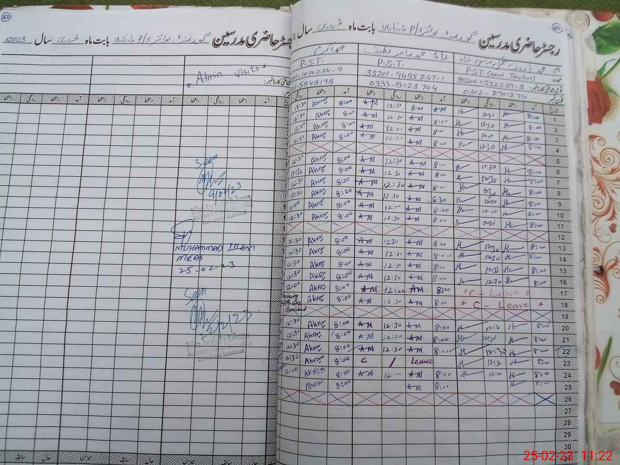 | Name: Mu**** Ak**** Designation: (School Headmaster's/Headmistress's) PST Phone/Cell Number: 03**** |