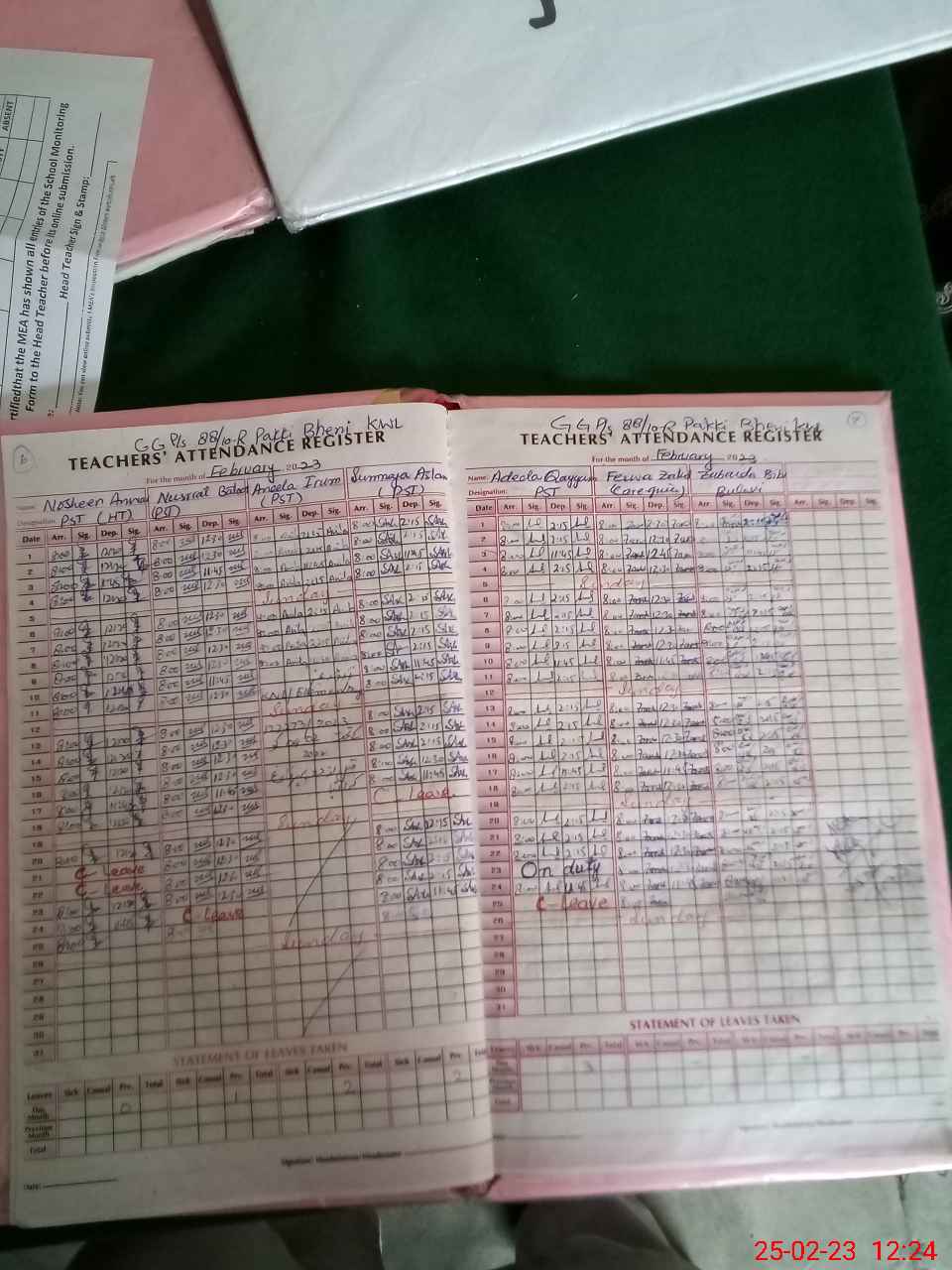 | Attendance Register | Head Teacher | MEA with School | Visit Proof |