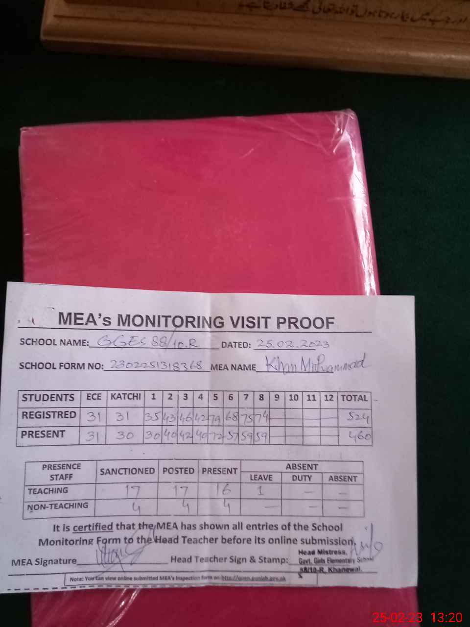 | EMIS Code: 36420109 | Name of School: GGES 88/10-R, KHANEWAL | |||