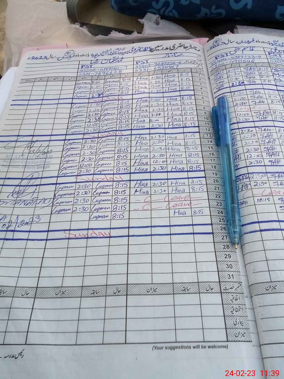 | Name: NA**** MA**** Designation: (School Headmaster's/Headmistress's) PST Phone/Cell Number: 03**** |