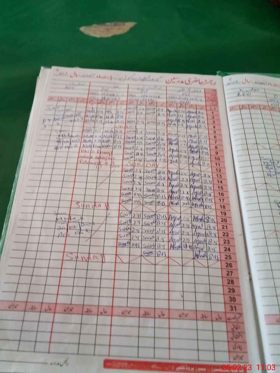 | CNIC | Full Name | Designation | R/C | Absence During Last Calender Month |