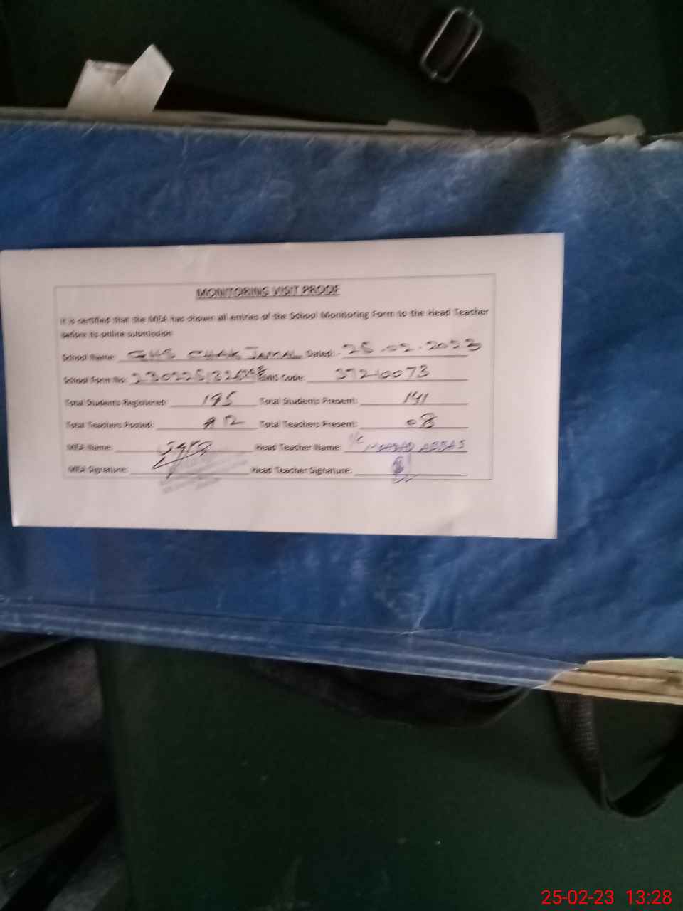 | Attendance Register | Head Teacher | MEA with School | Visit Proof |