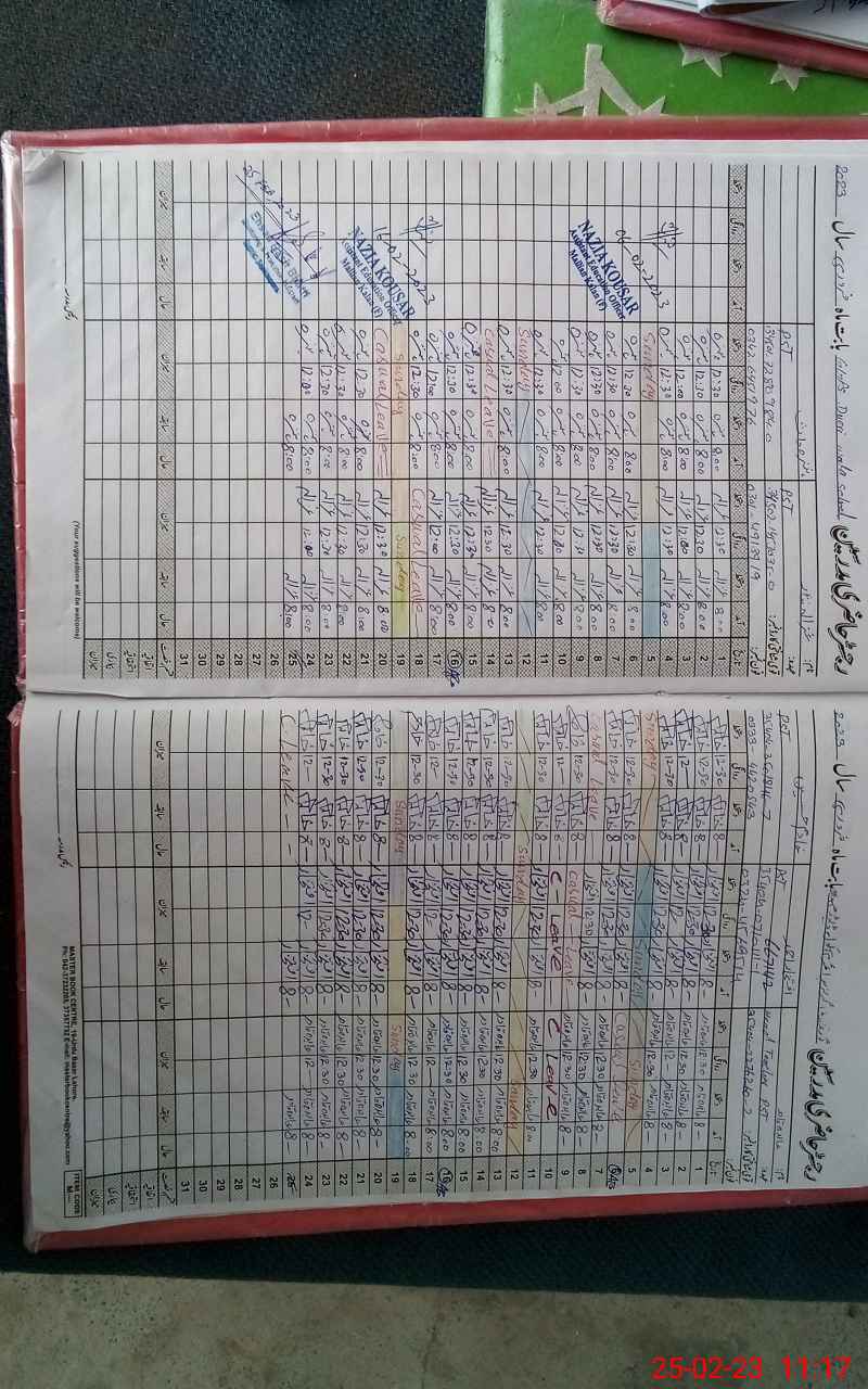 | CNIC | Full Name | Designation | R/C | Absence During Last Calender Month |