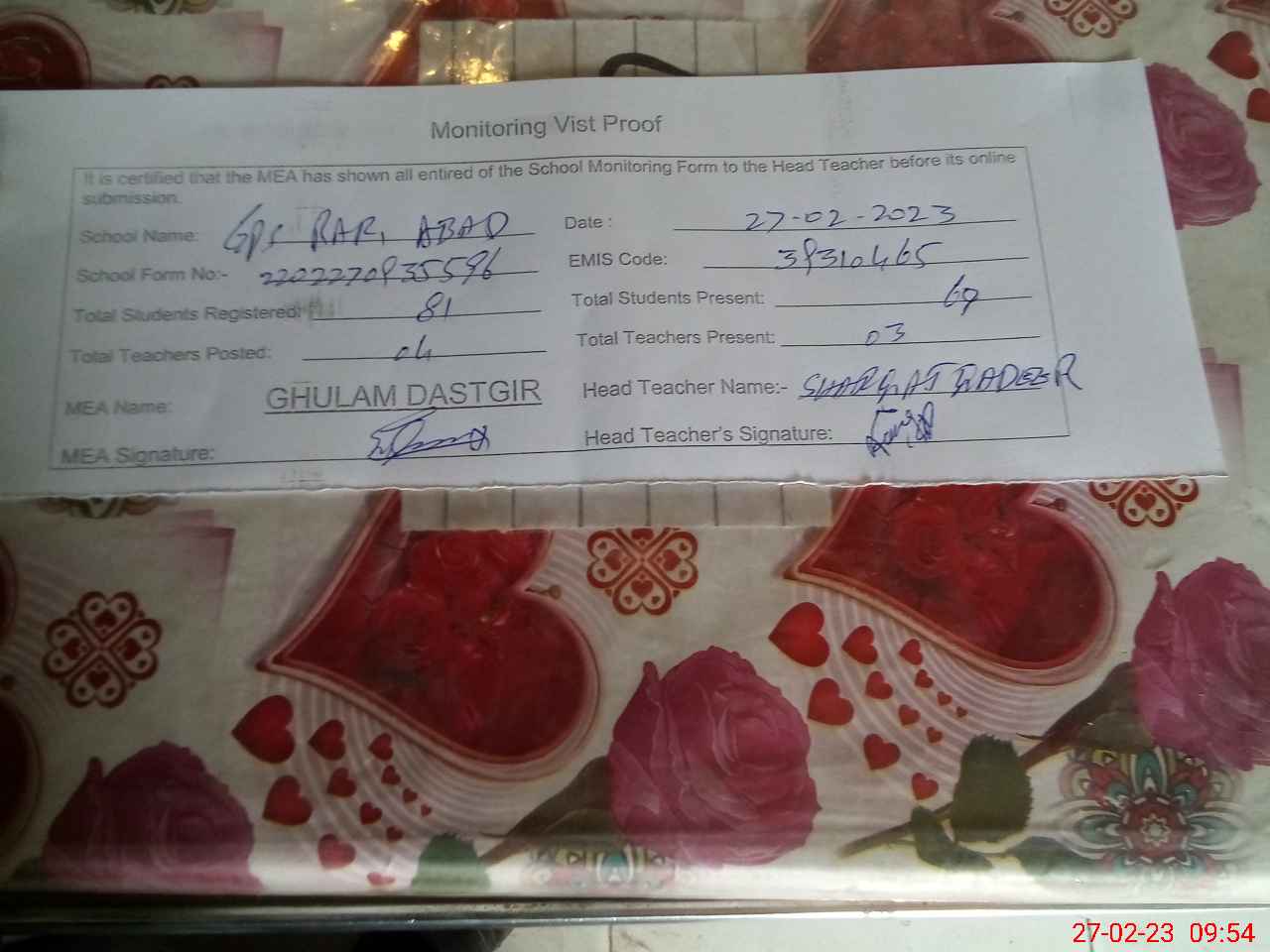 | EMIS Code: 39310465 | Name of School: GPS RAFI ABAD | |||