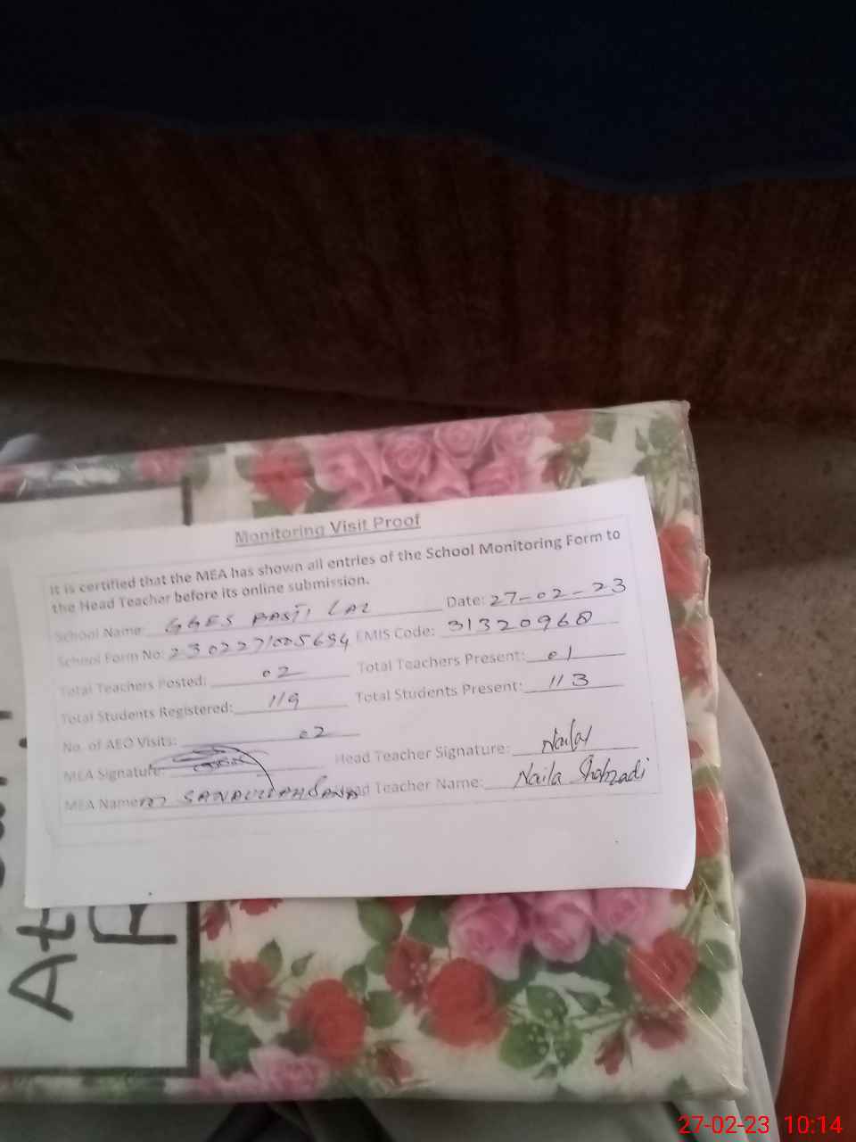 | Attendance Register | Head Teacher | MEA with School | Visit Proof |