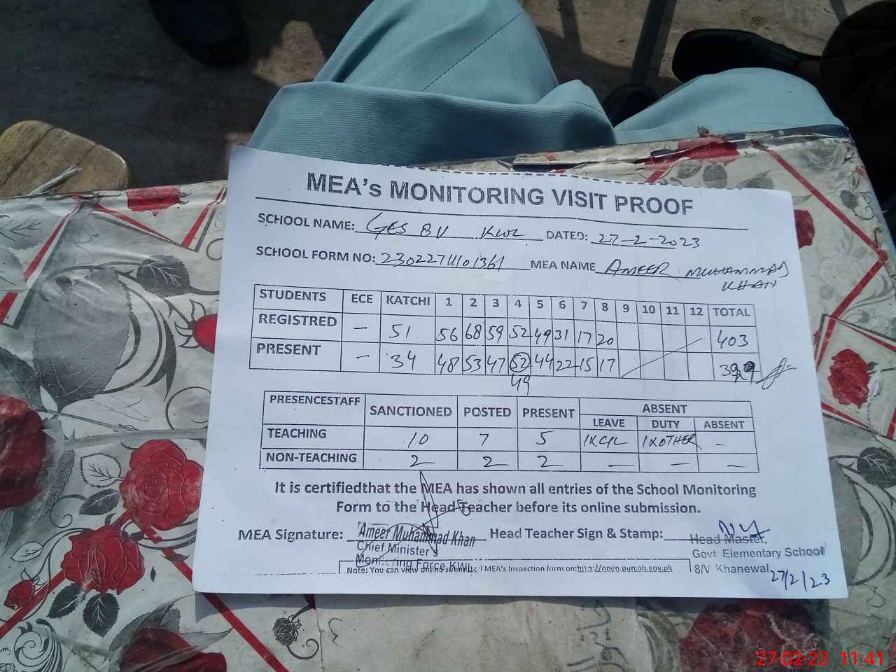 | EMIS Code: 36420199 | Name of School: GES 8/V, KHANEWAL | |||