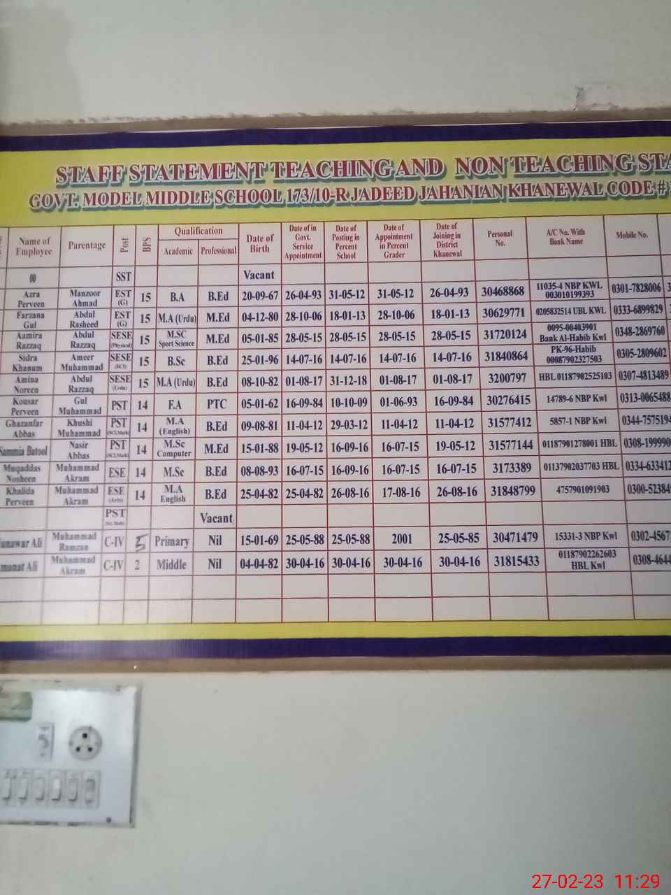 | Name: Sh**** Pa**** Designation: (School Headmaster's/Headmistress's) SST Phone/Cell Number: 03**** |