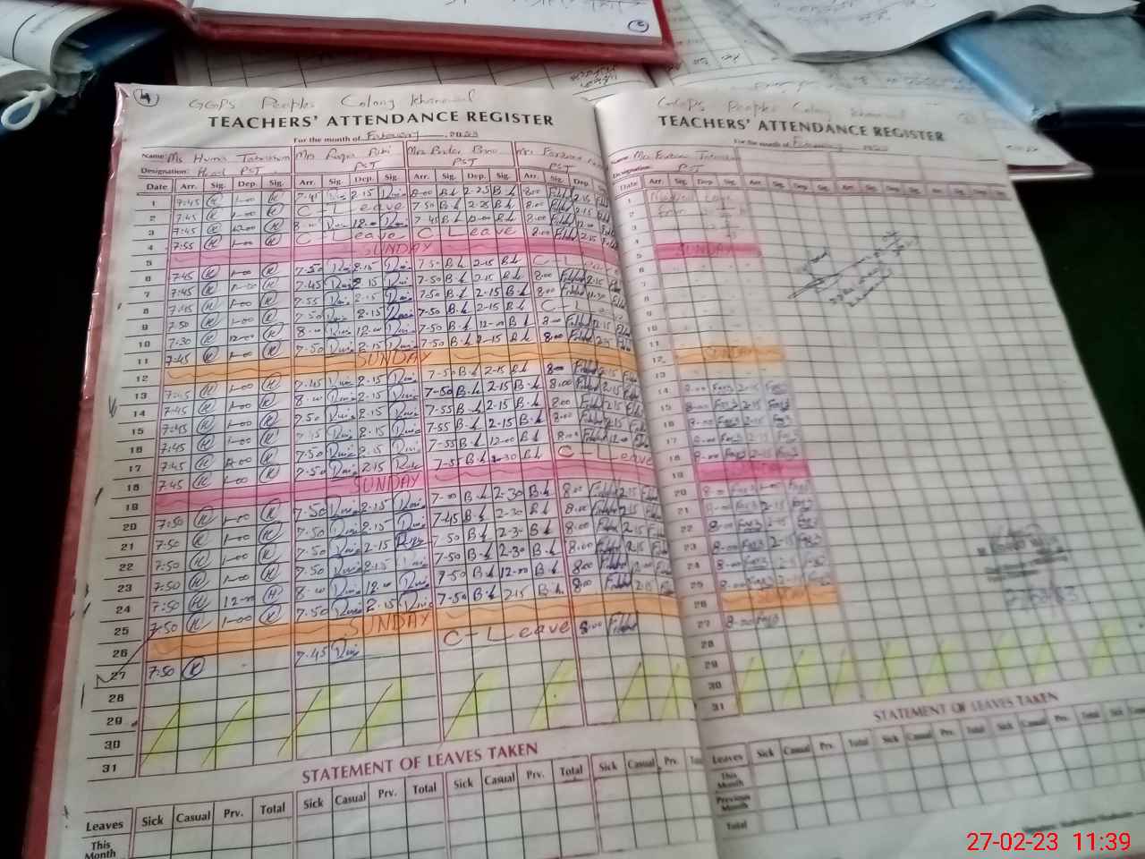 | Leave | Duty | Absent | Maternity | Medical | Ex- Pak |