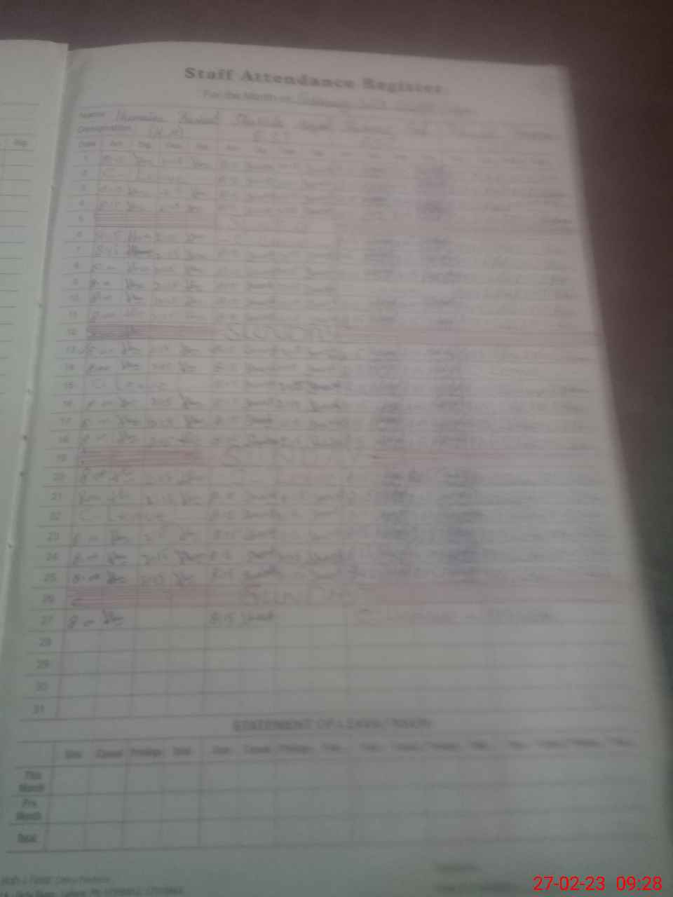 | CNIC | Full Name | Designation | R/C | Absence During Last Calender Month |