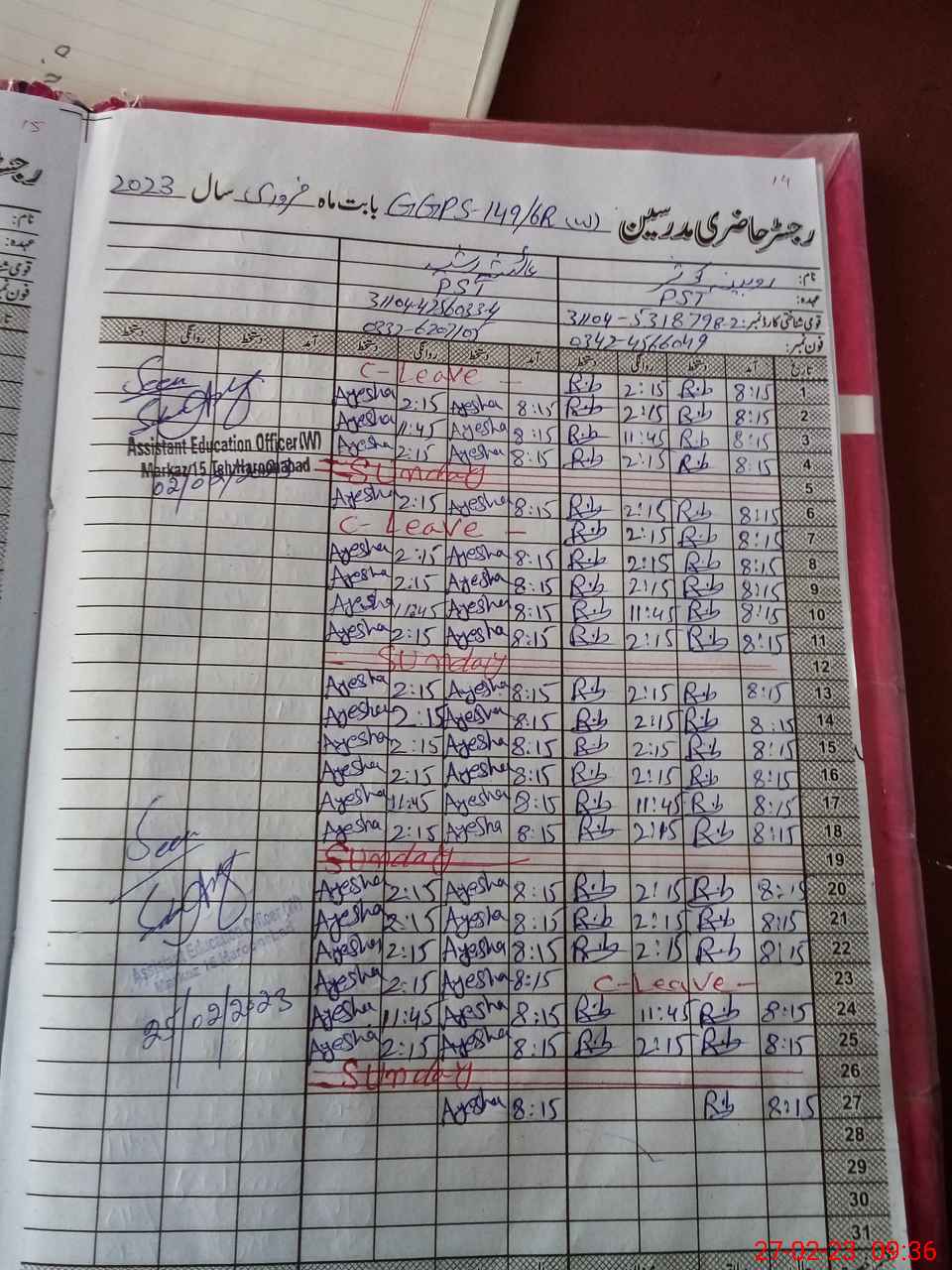 | Name: Ay**** Ra**** Designation: (School Headmaster's/Headmistress's) PST Phone/Cell Number: 03**** |