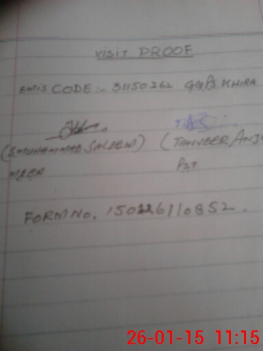 | School Visited by School Health & Nutrition Supervisor (No. of Visits) | Name1: | M Arshid | Name2: | ||
