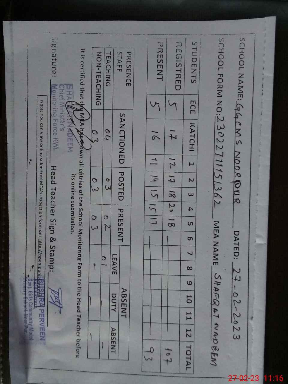| Monitoring Date: 27-02-2023 | Start Time: 27-02-2023 10:34 AM | End Time: 27-02-2023 11:18 AM | Name of MEA: Sh**** Na**** | |