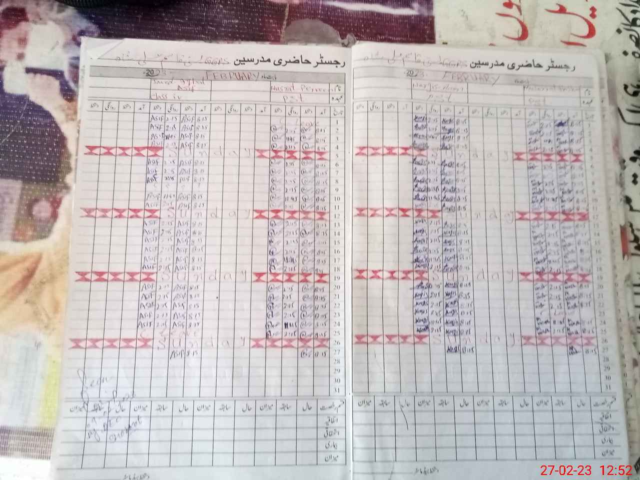 | CNIC | Full Name | Designation | R/C | Absence During Last Calender Month |