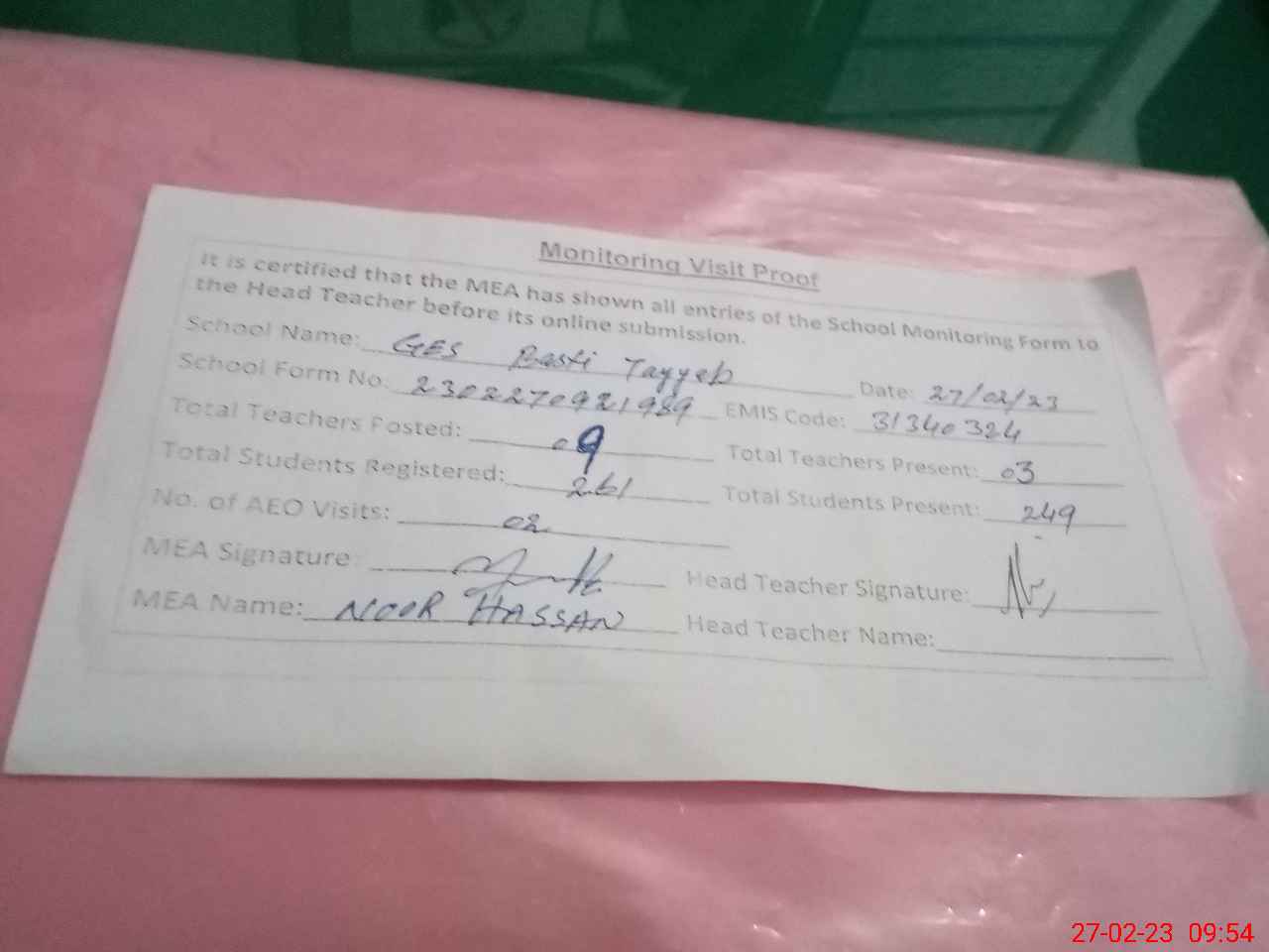 | EMIS Code: 31340324 | Name of School: GES BASTI TAYYAB | |||