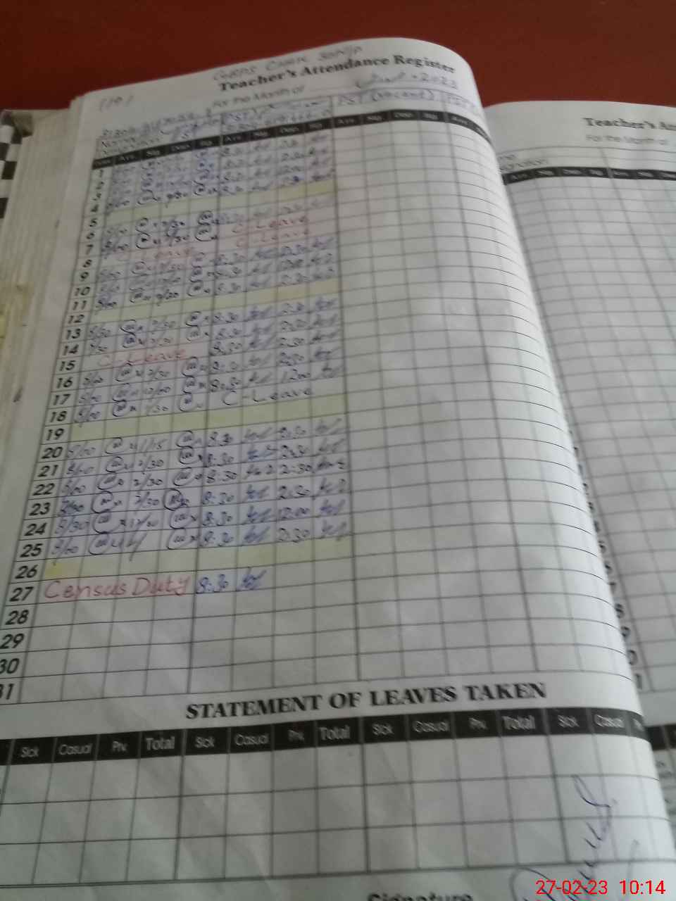 | Leave | Duty | Absent | Maternity | Medical | Ex- Pak |