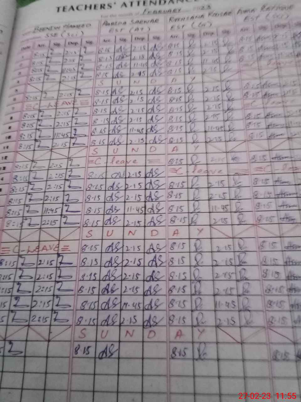 | 31**** | Ja**** Ba**** | PST | Regular | 2 | 0 | 0 | 0 | 0 | 0 | 0 | 0 | 2 | Casual |