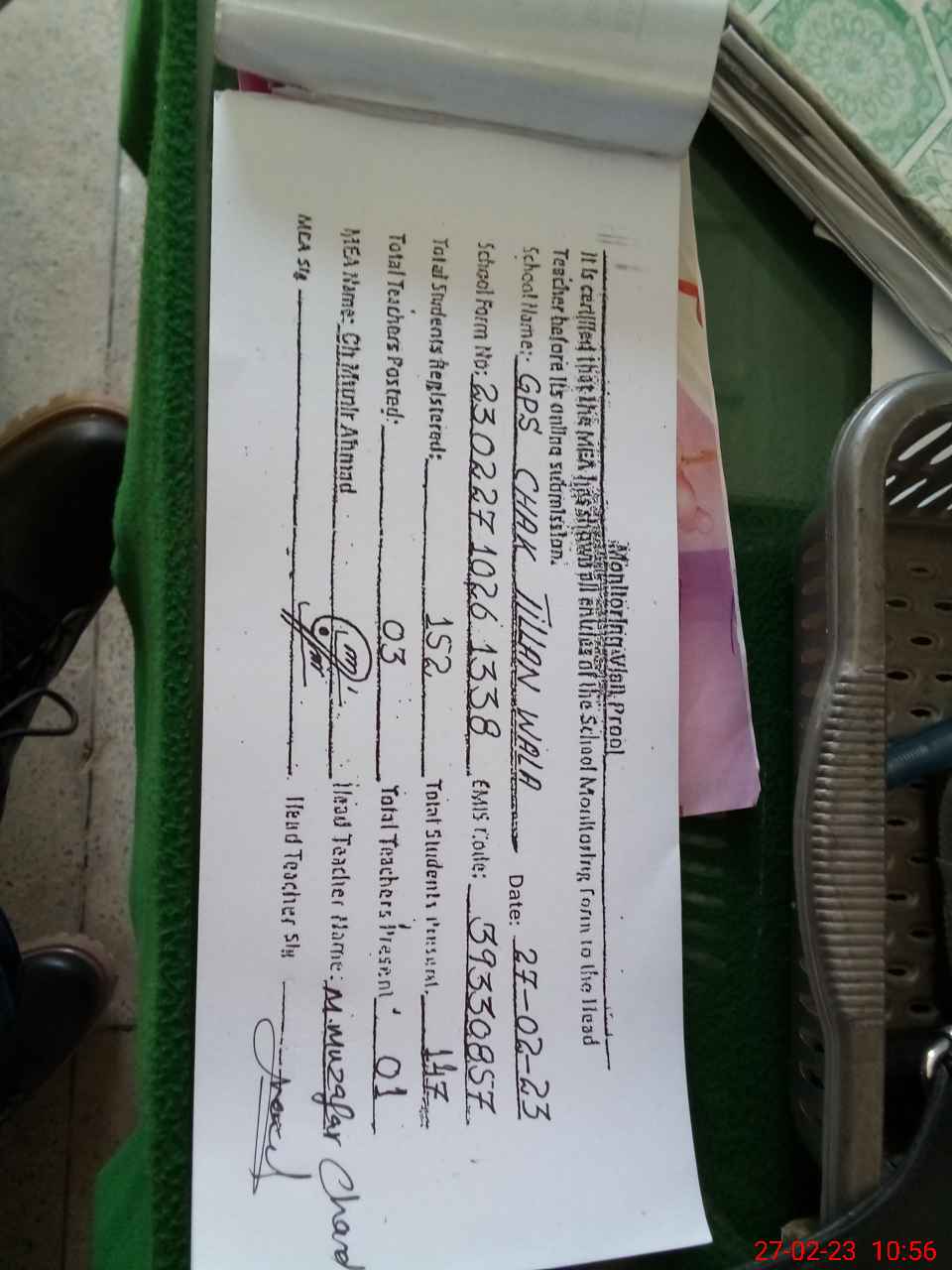 | EMIS Code: 39330857 | Name of School: GPS CHAK TILLAN WALA | |||