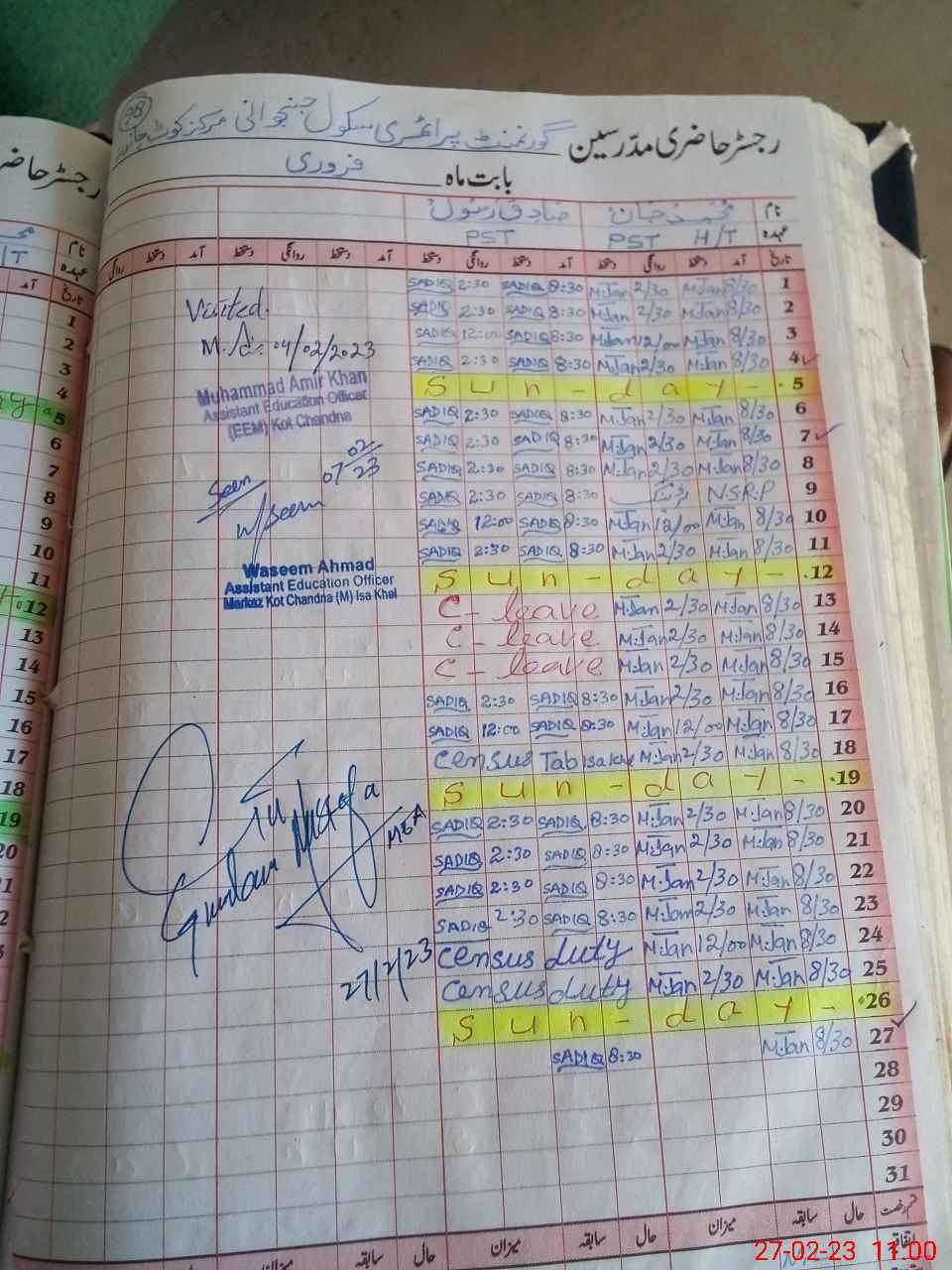 | Name: Mu**** Ja**** Designation: (School Headmaster's/Headmistress's) PST Phone/Cell Number: 03**** |