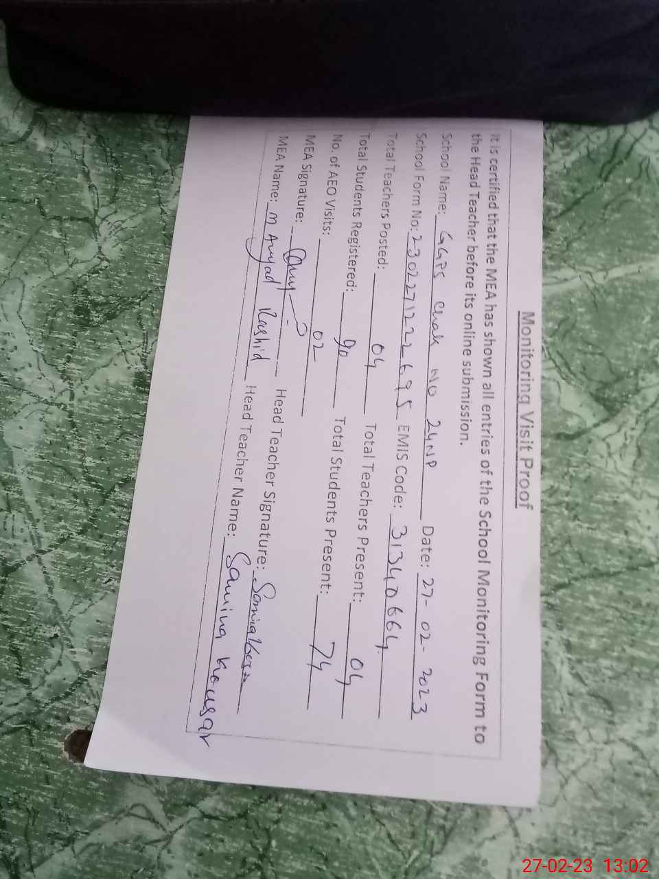 | EMIS Code: 31340664 | Name of School: GGPS CHAK NO.24/NP | |||