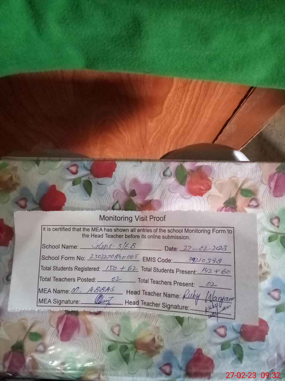 | EMIS Code: 39210398 | Name of School: GGPS 3 EB | |||