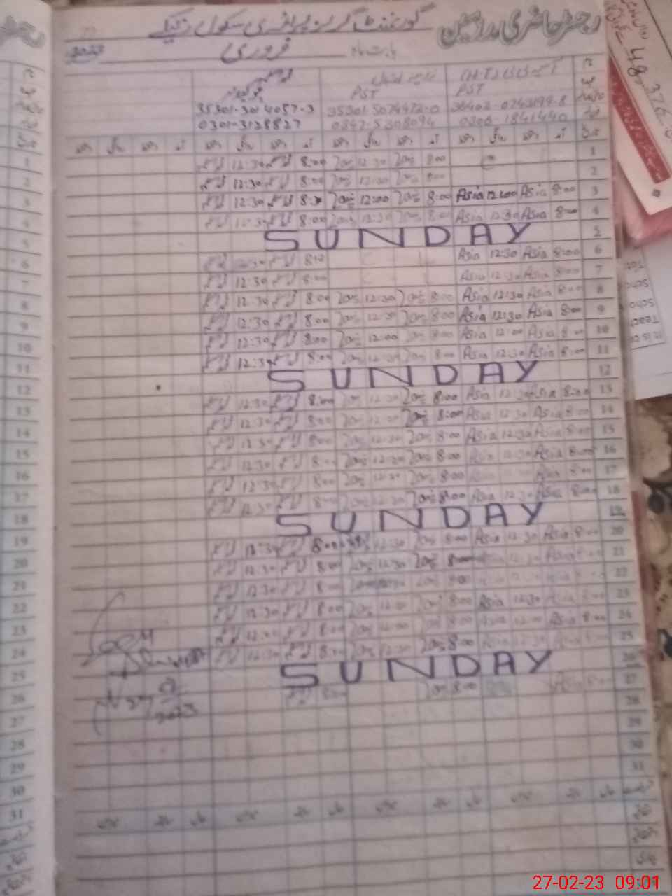 | Name: AS**** BI**** Designation: (School Headmaster's/Headmistress's) ESE Phone/Cell Number: 03**** |