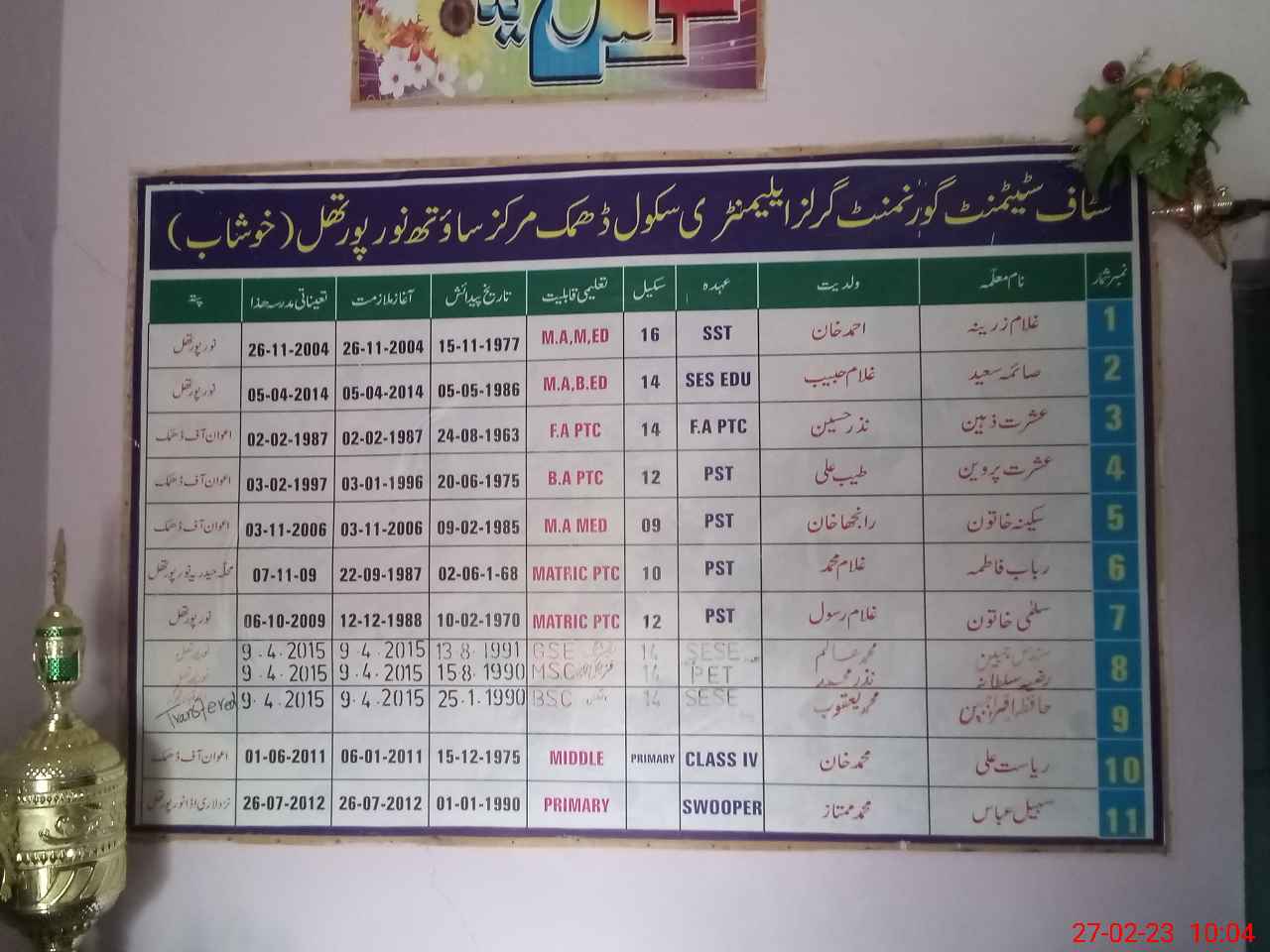 | District: KHUSHAB | Tehsil: NOORPUR THAL | Markaz: JURA KALAN (WEST) (FEMALE) | Level: High | |