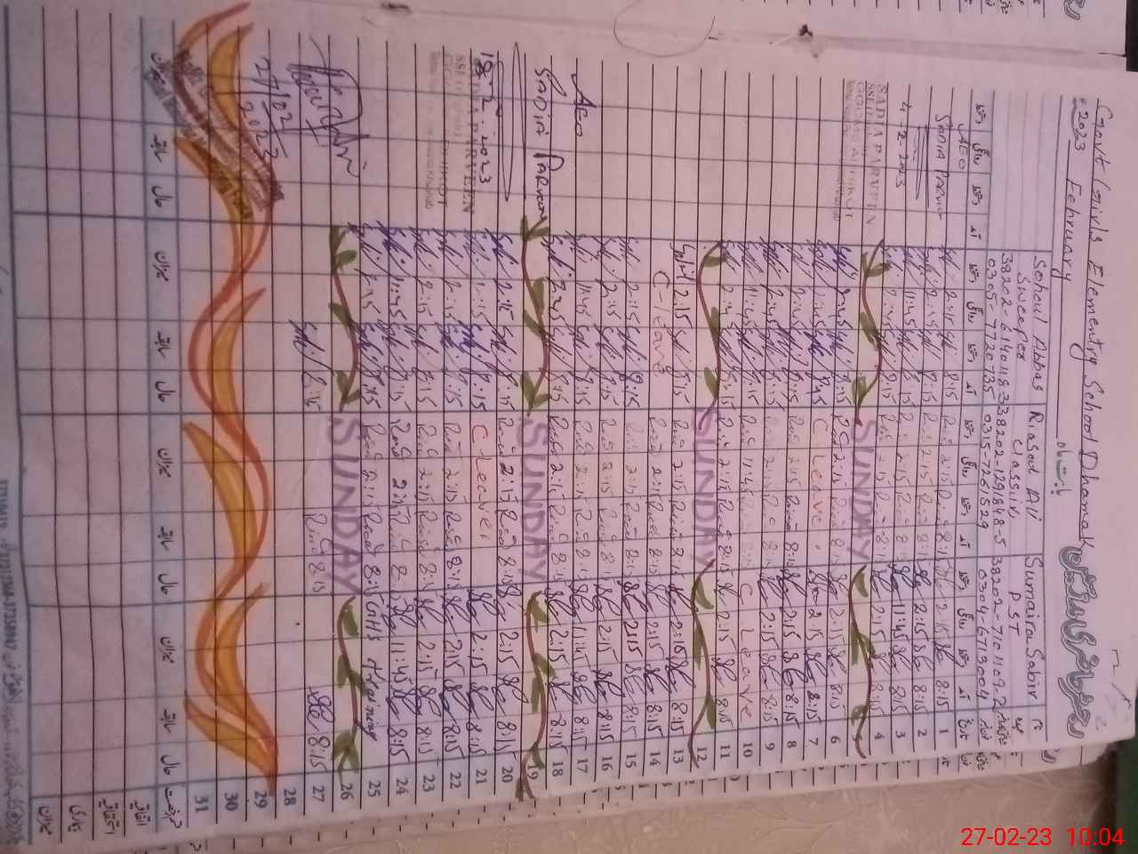 | Name: Sa**** Sa**** Designation: (School Headmaster's/Headmistress's) EST Phone/Cell Number: 03**** |